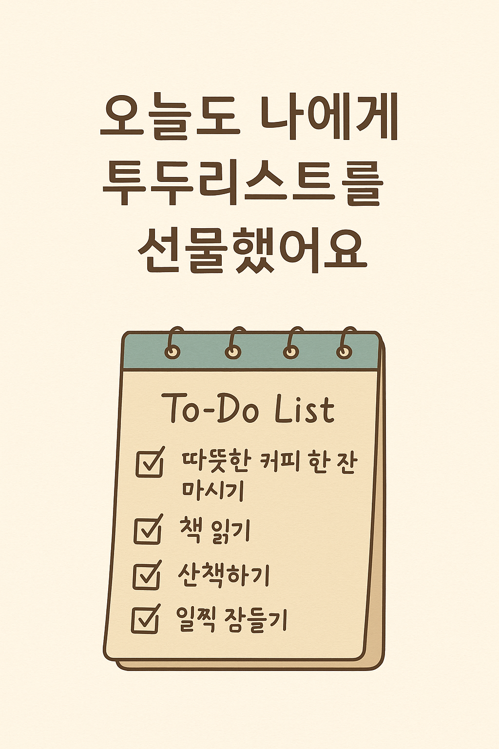 『오늘도 나에게 투두리스트를 선물했어요』는 “오늘 하루를 나답게 사는 법”에 대해 말해줍니다. 성취나 효율보다 소중한 것이 있다는 사실을, 그리고 내 감정과 나의 리듬이 무엇보다 중요하다는 사실을 다시 깨닫게 해 주죠. 바쁜 하루 중 몇 분이라도 나를 위한 리스트를 써보는 것, 그것이 이 책이 전하고자 하는 작지만 따뜻한 실천입니다.